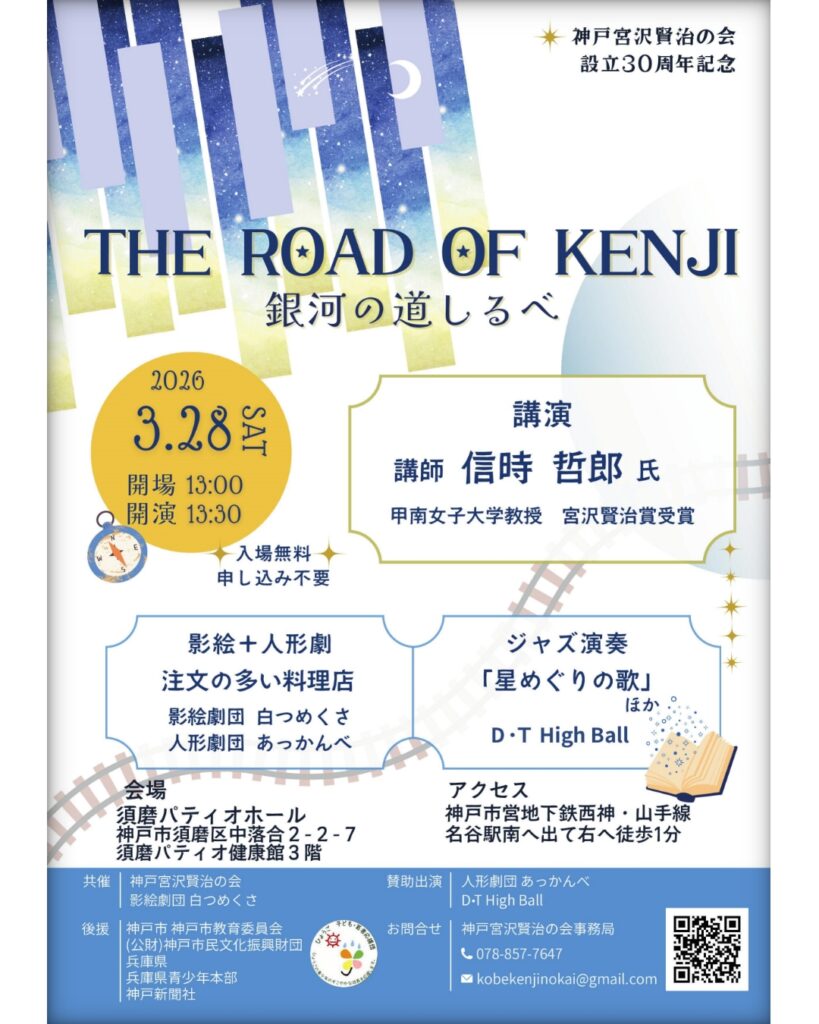 宮沢賢治を知りたい!賢治の作品を見たい!賢治の曲を聴きたい!そんなあなたへ、"ROAD OF KENJI"と題したイベントです!信時…