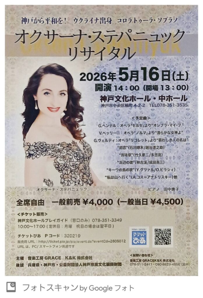 神戸から平和を! ウクライナ出身 コロラトゥーラ・ソプラノオクサーナ・ステパニュック リサイタル・ G.ヘンデル :オペ…