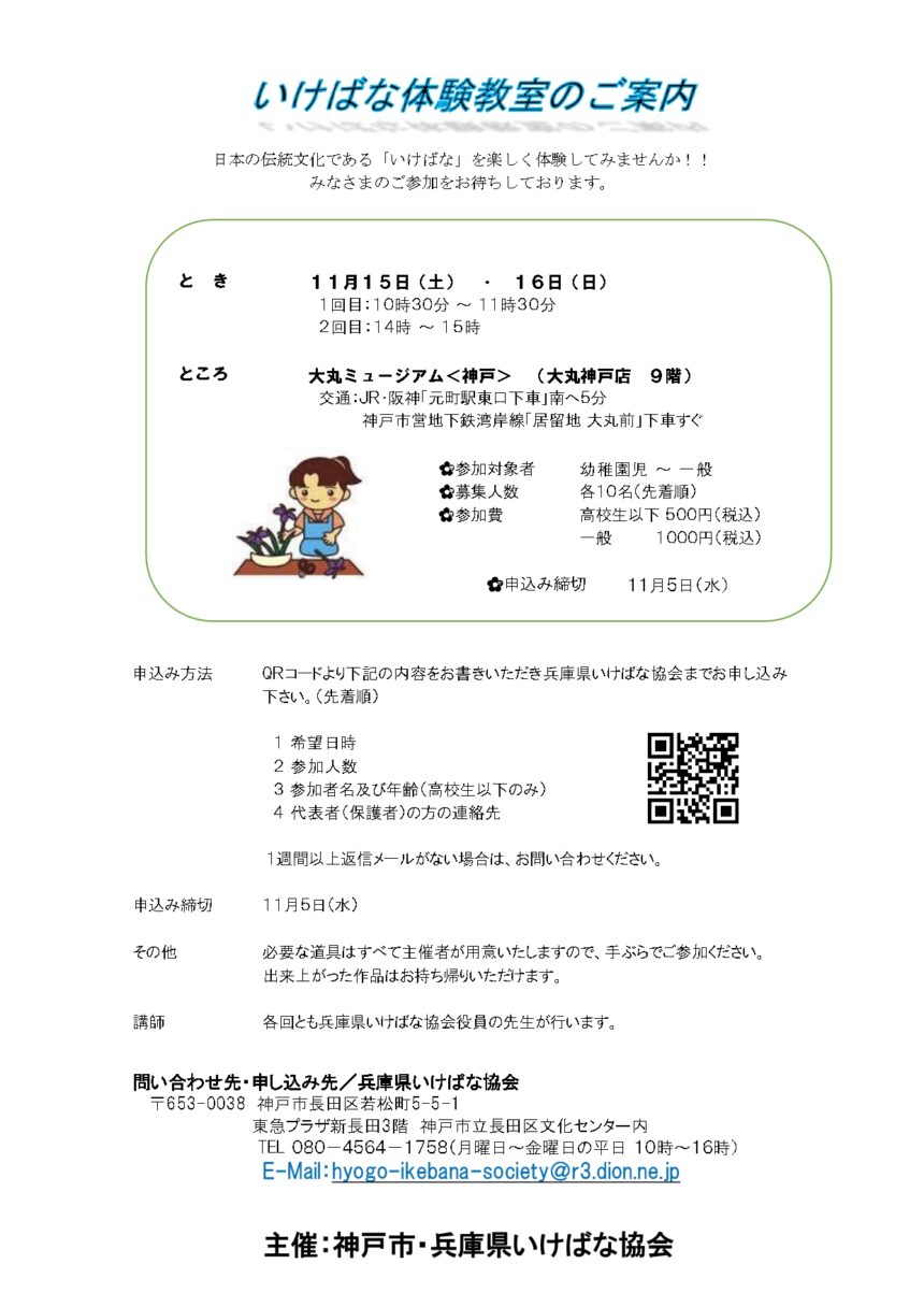 | 問い合わせ先 | 兵庫県いけばな協会:080-4564-1758 |