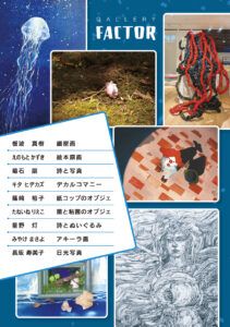 | 内容 | GALLERY FACTOR 恒例!冬のジャンルレス展覧会です。9名の作家による詩・絵画・写真・立体作品の展示はもちろん、ワークショップや朗読会も実施いたします。詳細はWebサイトにてご確認ください。 |