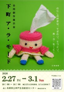 内容世の流れに馴染まず逆らわず仲間たちと共有できる「流行」を 形にしたらこうなった、というような作品でいっぱいです。 会期中は出展グループによる ワークショップも同時開催します。