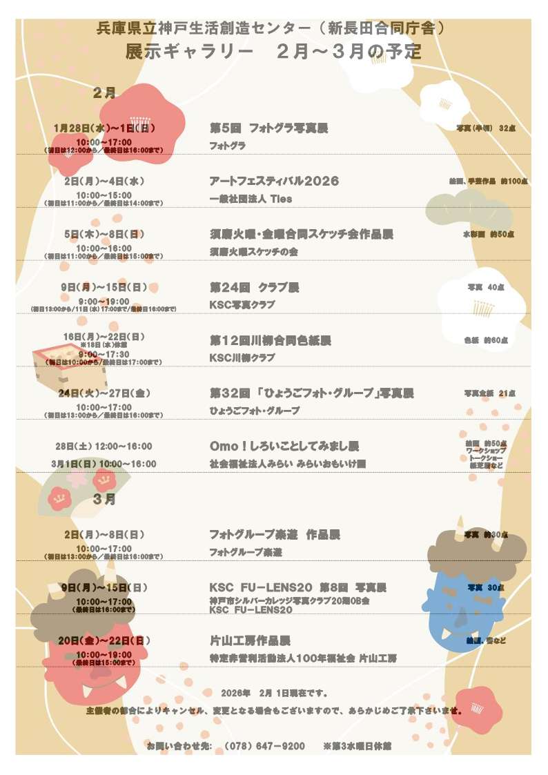 | 問い合わせ先 | 兵庫県立神戸生活創造センター:078-647-9200 第3水曜日休館 |