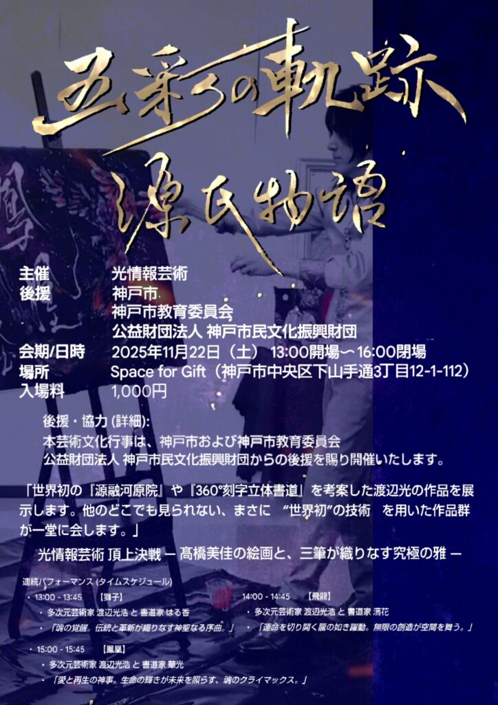 世界初の折り紙「源融河原院(六条院)」や、「360°刻字立体書道」「360°刻字立体かな書道」を考案した渡辺 光浩の作品を展示…