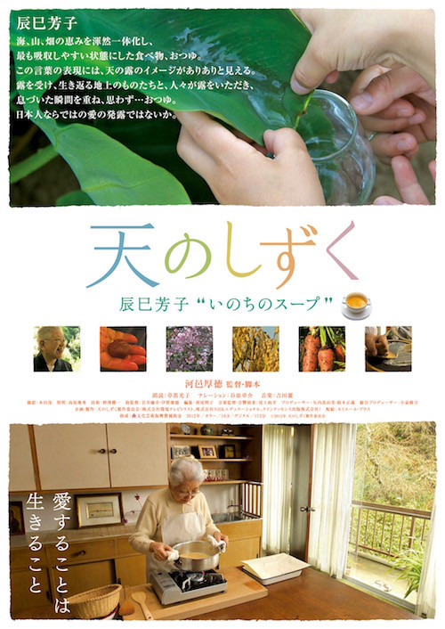 | 内容 | 料理研究家・辰巳芳子のドキュメンタリー映画『天のしずく 辰巳芳子“いのちのスープ” 』を4月4日(土)より1週間限定でリバイバル上映。初日上映後に、食と農078で「いのちのスープ教室」を開催します(要予約)。 |