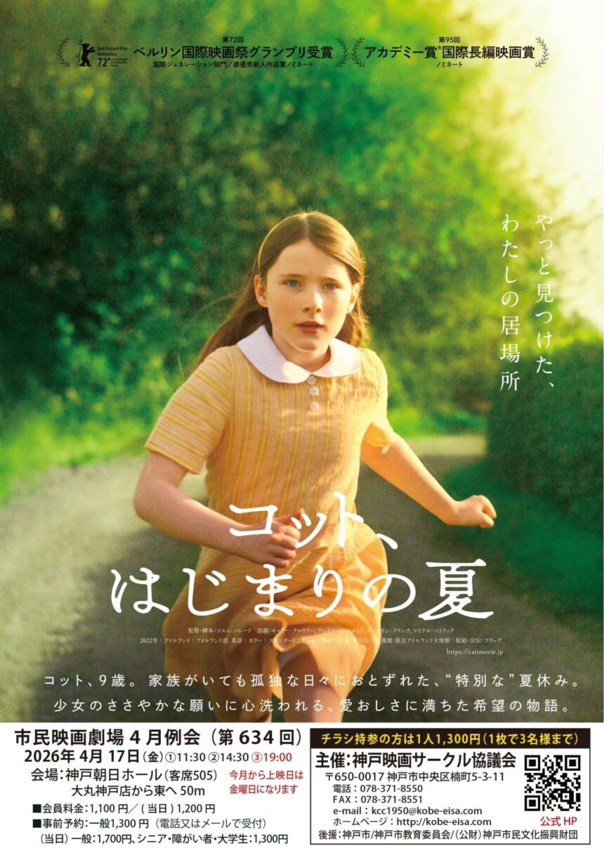 内容アイルランドを舞台に、家族といても孤独を感じていた9歳の寡黙な少女コットが、夏休みに預けられた親戚夫婦のもとで愛情に包まれ、初めて自分の居場所を見つけた喜びを実感していくひと夏の成長物語。(コルム・バレード監督/2022年)