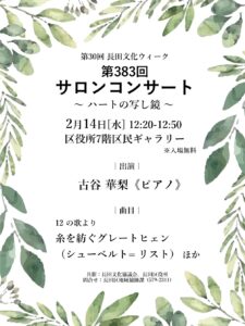 | 内容 | 長田区役所で毎月行われている無料のコンサートです。どなたでもお気軽にお越しください。出演:古谷華梨(ピアノ) |