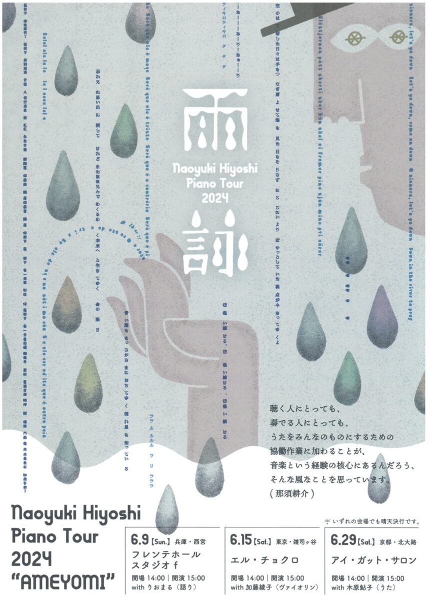 | 催し物名 | Naoyuki Hiyoshi Piano Tour 2024 “AMEYOMI” |
