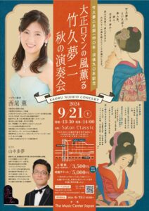 | 催し物名 | 竹久夢二生誕140年・没後90年記念 大正ロマンの風薫る秋の演奏会 |