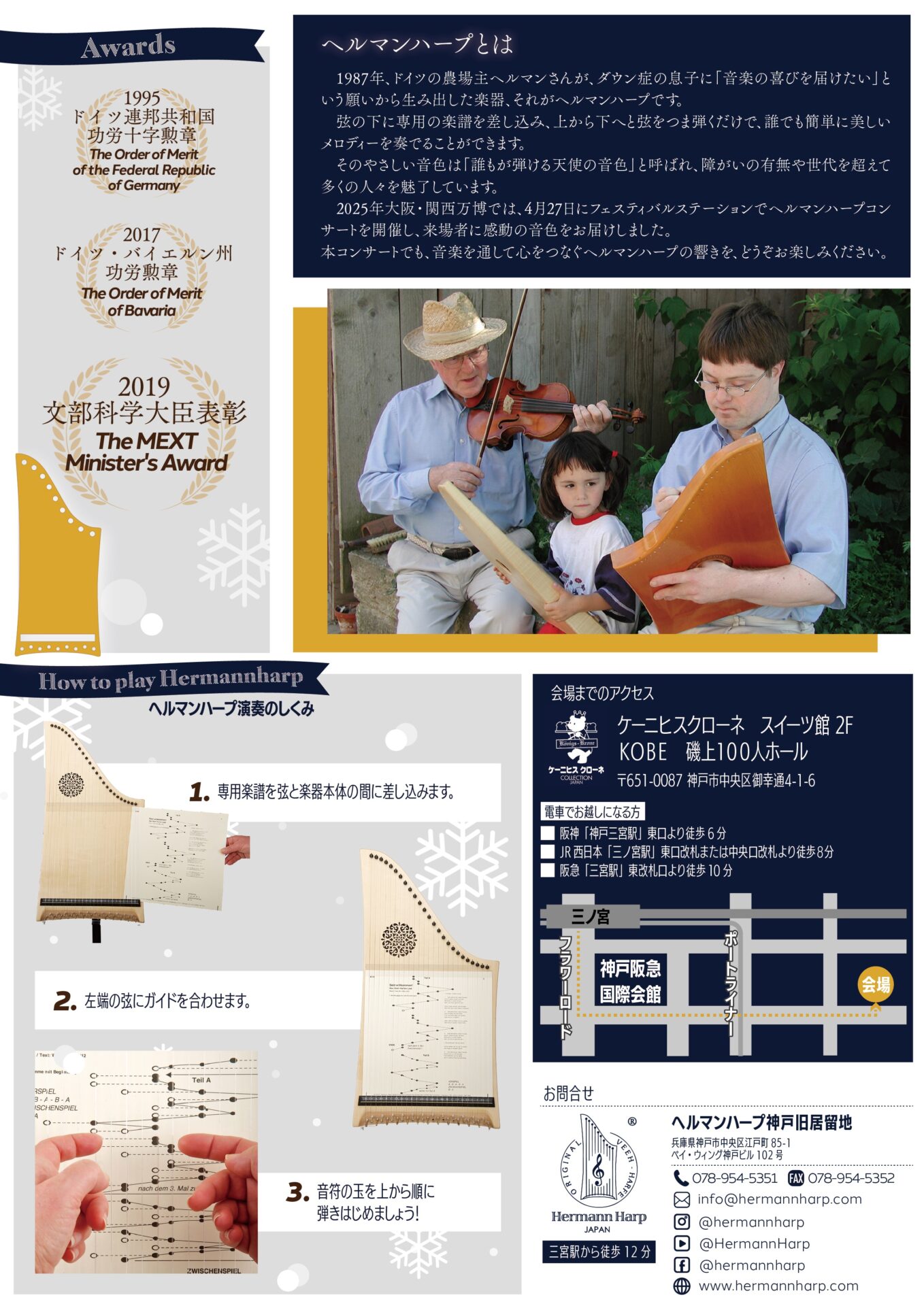 問い合わせ先info@hermannharp.com or 0789545350