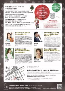 | 問い合わせ先 | チェンバーミュージックアトリエ神戸事務局(10-18時) tel.050-3204-3247 |