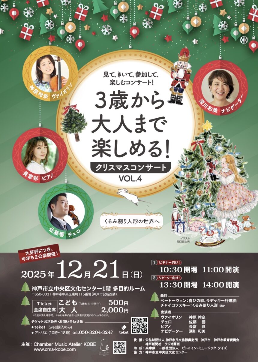 | 問い合わせ先 | チェンバーミュージックアトリエ神戸事務局(10-18時) tel.050-3204-3247 |