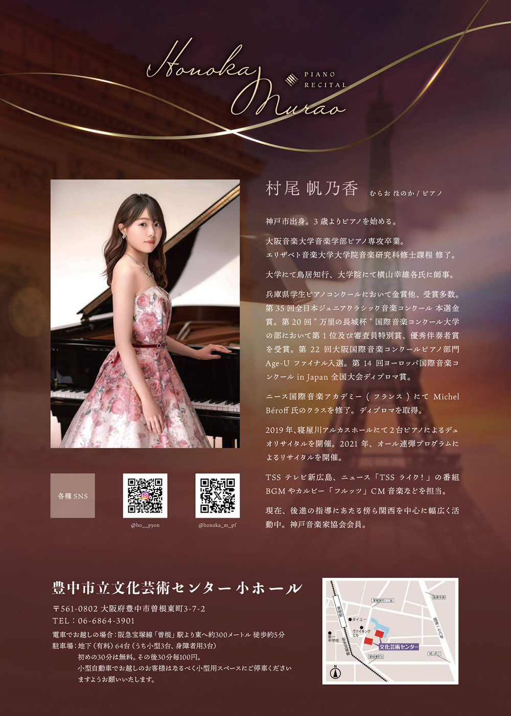 | 主催名称 | 村尾帆乃香ピアノリサイタル実行委員会 |