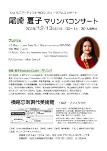 | 催し物名 | ひょうごアーティストサロンミュージアムコンサート 尾崎夏子 マリンバ コンサート |