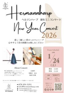 | 内容 | 神戸旧居留地で、新年を彩るヘルマンハープのミニコンサートを開催いたします。優しいハープの音色に耳を傾けながら、午後のひとときを。コンサートの後には、実際に触れていただける体験会もございます。参加費は無料で、ご予約が必要です。 |