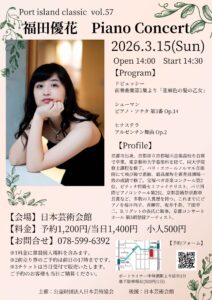 | 催し物名 | ポートアイランドクラシックvol.57 福田優花ピアノコンサート |