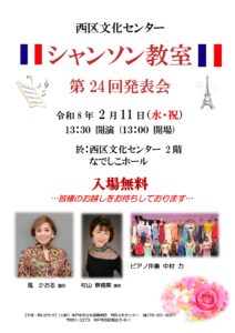 催し物名西区文化センター 第24回シャンソン教室発表会