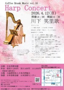 | 催し物名 | コーヒーブレイクミュージックvol.16 川下笑里歌ハープコンサート |