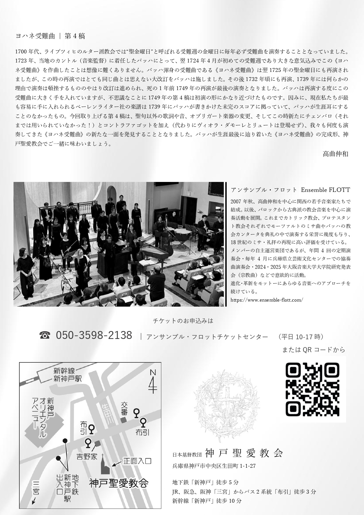 | 催し物名 | アンサンブル・フロット第48回定期演奏会 バッハ《ヨハネ受難曲》第4稿 |
