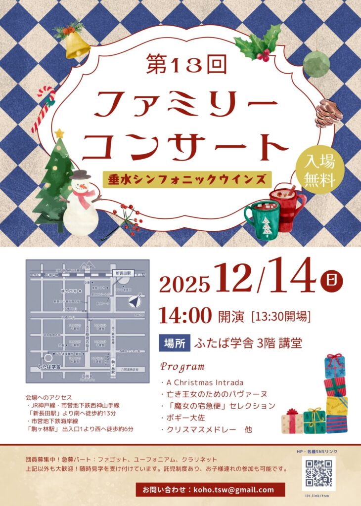 地元須磨フィルハーモニー管弦楽団が演奏するクリスマスのコンサート。小さなお子様も入場可能ですので、ご家族そろってクリ…