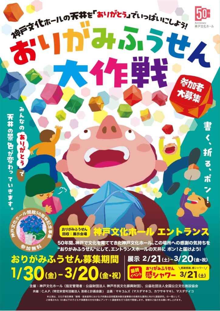おりがみ大作戦 神戸文化ホールの天井を「ありがとう」でいっぱいにしよう!