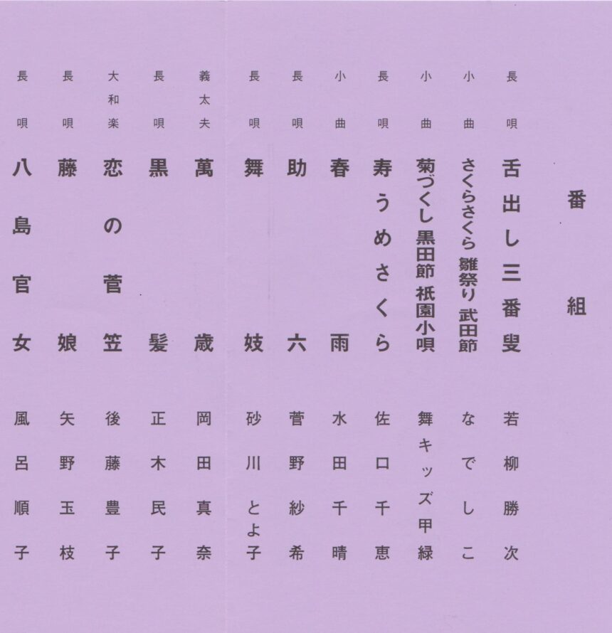 | 内容 | 寿三美会にてお稽古をされている方々の発表会です。 |