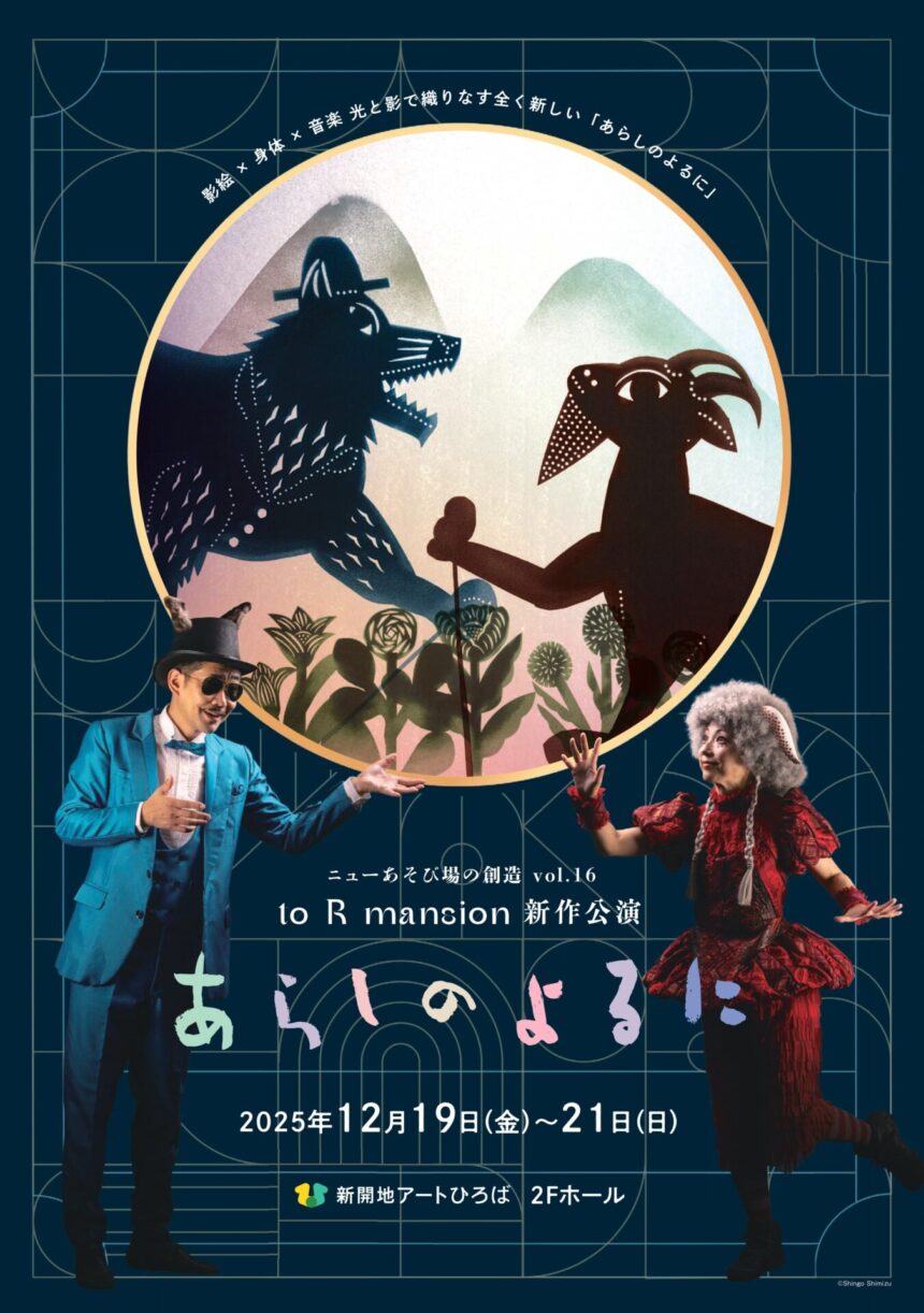 内容絵本シリーズ「あらしのよるに」を、世界中で大人気のパフォーマンスカンパニー to R mansionが、影絵師・川村亘平斎と共に独創的な解釈で舞台化!-影絵×身体×音楽- 光と影で織りなす全く新しい「あらしのよるに」のはじまりはじまり。