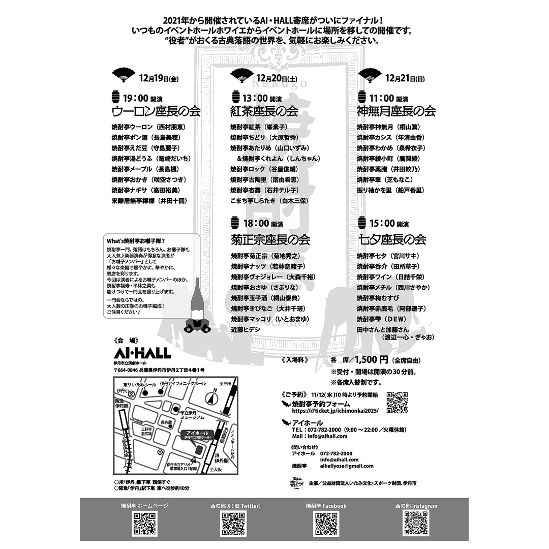 催し物名焼酎亭AI・HALL寄席~一門会~