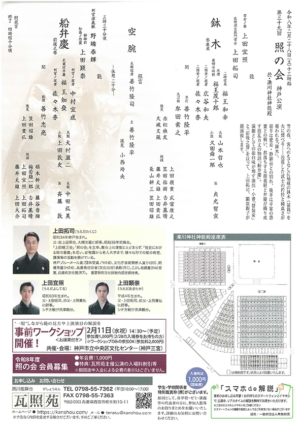 | 問い合わせ先 | 夙川能舞台瓦照苑:電話 0798-55-7362 |