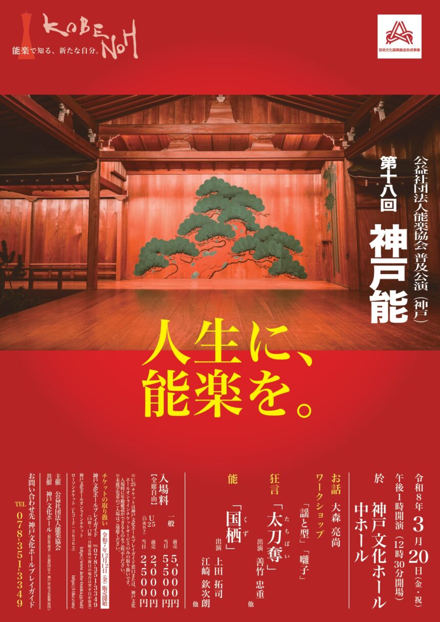 | 主催名称 | 主催:(公社)能楽協会 共催:神戸文化ホール(指定管理者:公益財団法人 神戸市民文化振興財団) |