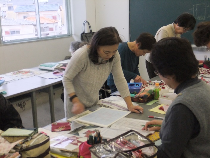 色とりどりの木綿を使って、クッション、テーブルセンター、小物からひざ掛けまで、全て手で縫い上げます。手持ちの布で小物数点も作ります。独自のピースワークを基礎から練習しながら、楽しみましょう。
