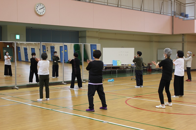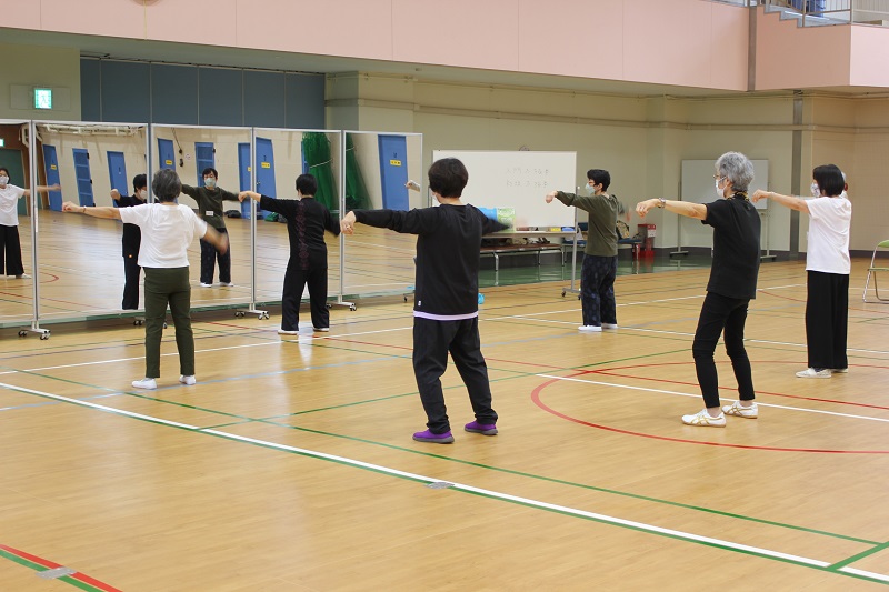 中国式健康法とあわせて太極拳の動きの型を通じてリラックスすることを中心に、心身のバランスを整えながらレベルアップを目指す。