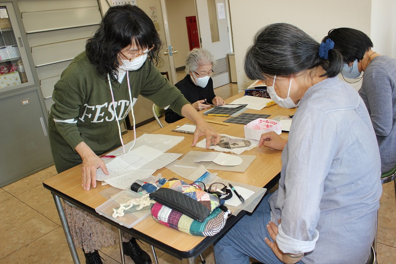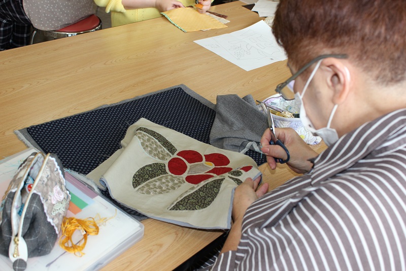 布を接ぎ合わせて袋物からタペストリー等を作ります。基礎から始めるので初心者歓迎します。また、興味のある方はモラ手芸も取り入れています。