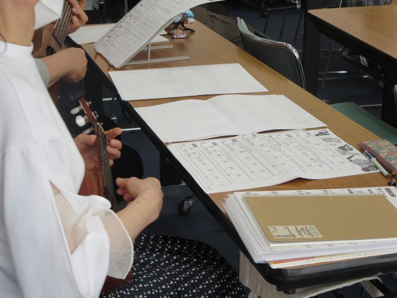 基礎から学び、ハワイアン歌唱、伴奏、ソロ弾、アンサンブルなど簡単なものを楽しく練習します。10回分のテキストを用意します。