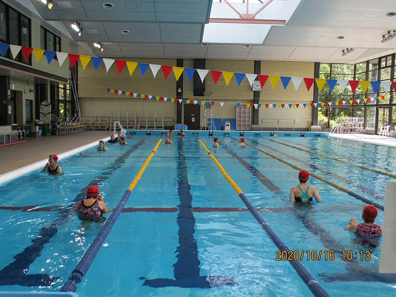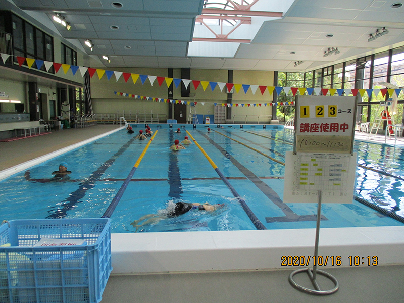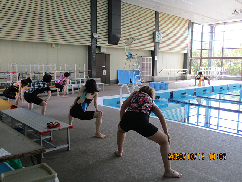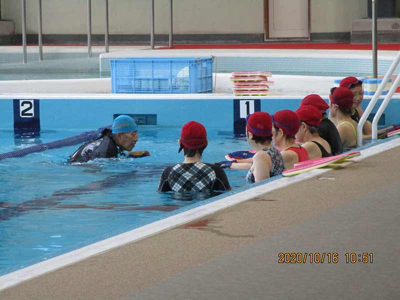 泳げない方、泳げる方に分かれて練習します。正しいフォームで長く泳げることを目標とします。