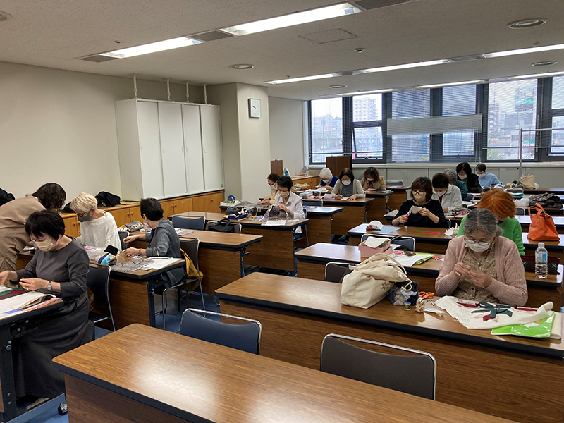 小さな布を繋ぎ合わせ、配色を楽しみ、袋物やタペストリー等を作ります。初心者の方も一緒に楽しく手芸をしましょう。