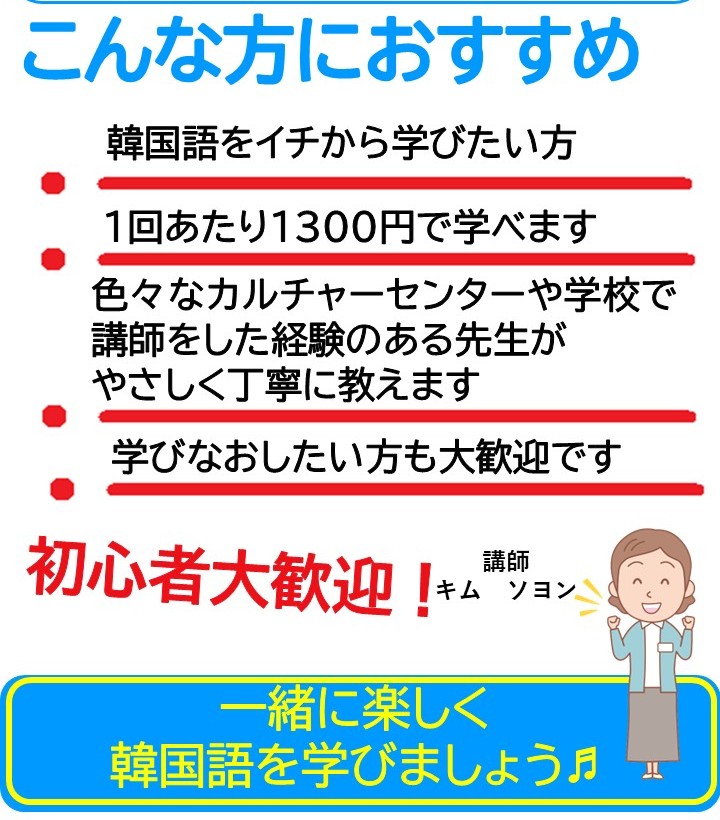 韓国語を一から学びたいと思った方のための講座です。初心者の方、大歓迎です!