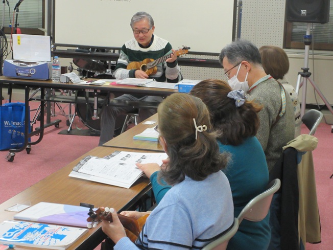 ウクレレに興味はあるがまったく初めての方が対象。ウクレレの持ち方からゆっくり指導します。ドレミが読めなくても大丈夫。ウクレレに心が癒やされますよ。