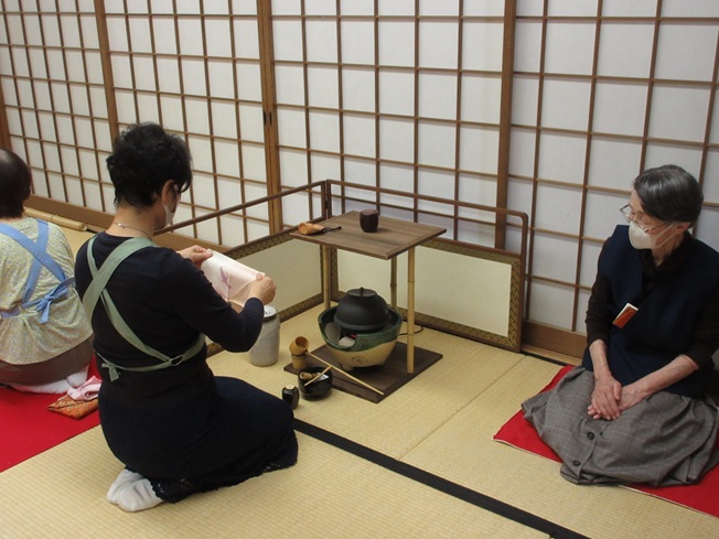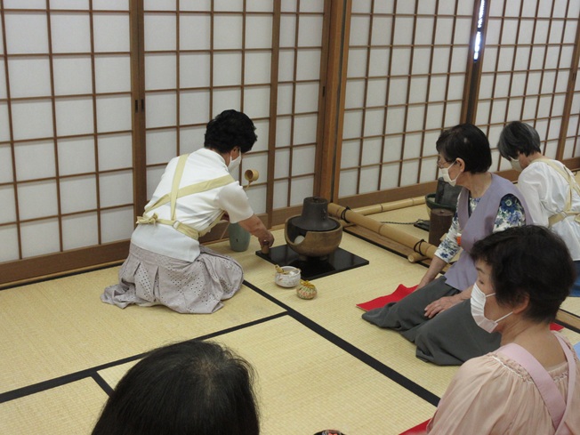 入門クラスは初心者を対象に、お茶の頂き方・点て方などの裏千家茶道の基礎的な作法を指導します。初級・中級クラスは経験者を対象に茶会でのマナーの全てを指導します。