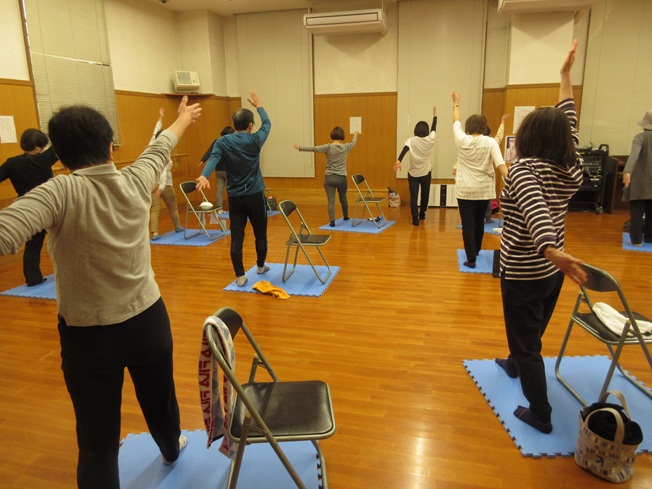 アンチエイジングを目指し、椅子を使った無理のない全身ストレッチと、日常生活の基本的な動きを取り入れた運動を楽しく行い、筋力、持久力、心肺機能を高めます。