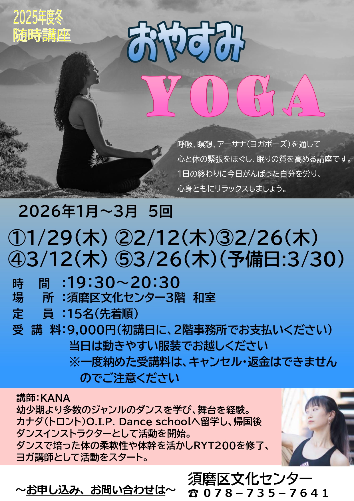 日程:2026年 1/9(金)、23(金)、2/6(金)、20(金)、3/6(金) 計5回