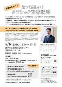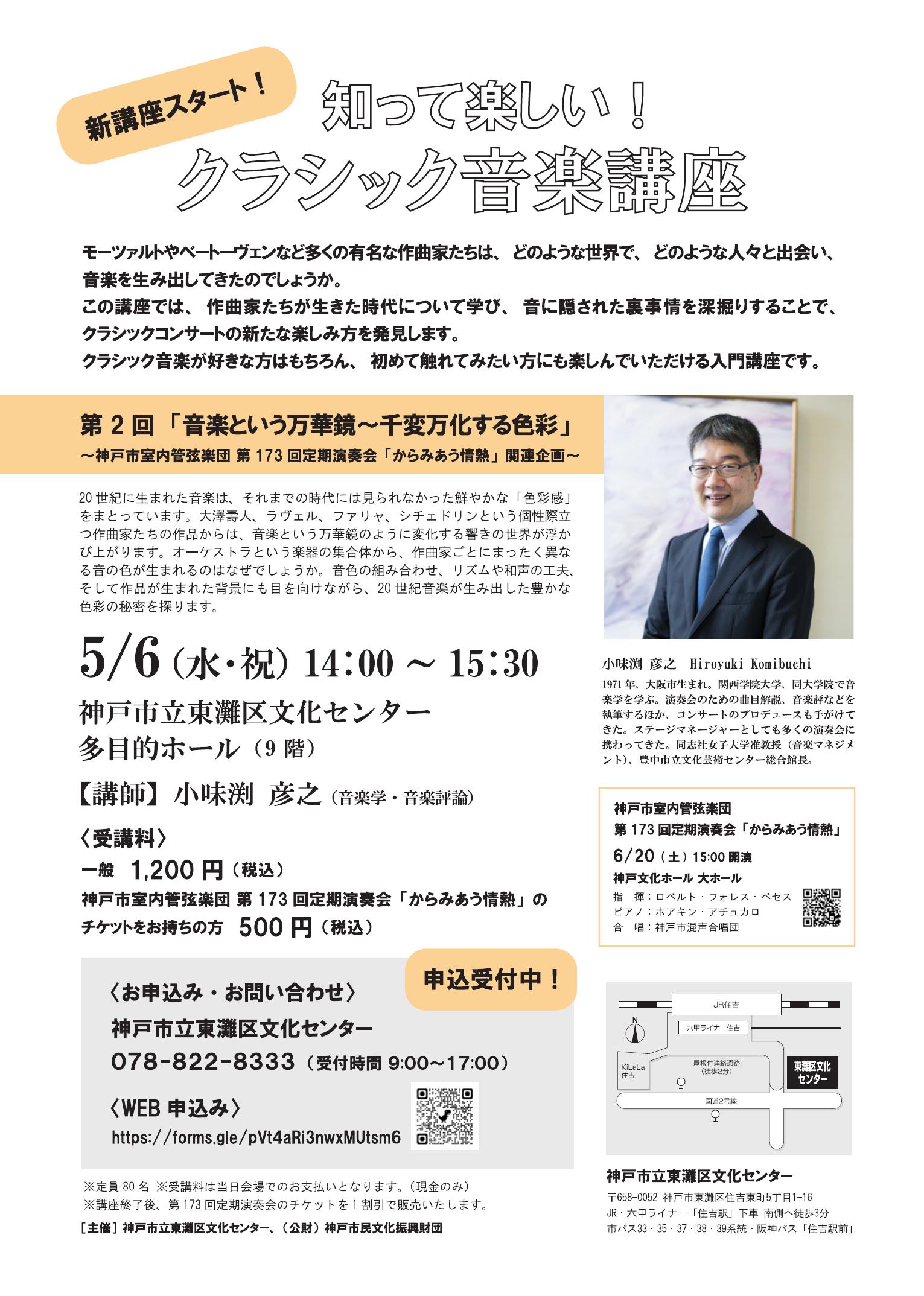 【受講料】 一般1,200円(税込) ※神戸市室内管弦楽団 第173回定期演奏会「からみあう情熱」のチケットお持ちの方500円(税込)