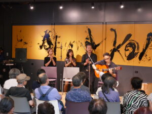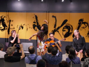 ギターのRodrigo Mabelさん、カホンの木村和人さん、パルマのYUMIKOさん MAYAさんの