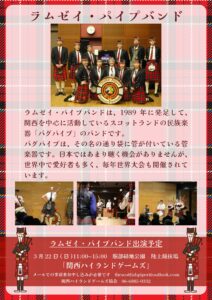 を奏でます。関西で活躍中のバグパイプ・バンド「ラム
