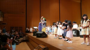 子どもたちも簡易な楽器を使って舞台の上で演奏したりダンスをしたり~