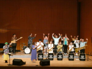 アニメソングなどなじみある曲をビックバンドでジャズアレンジした演奏でした。