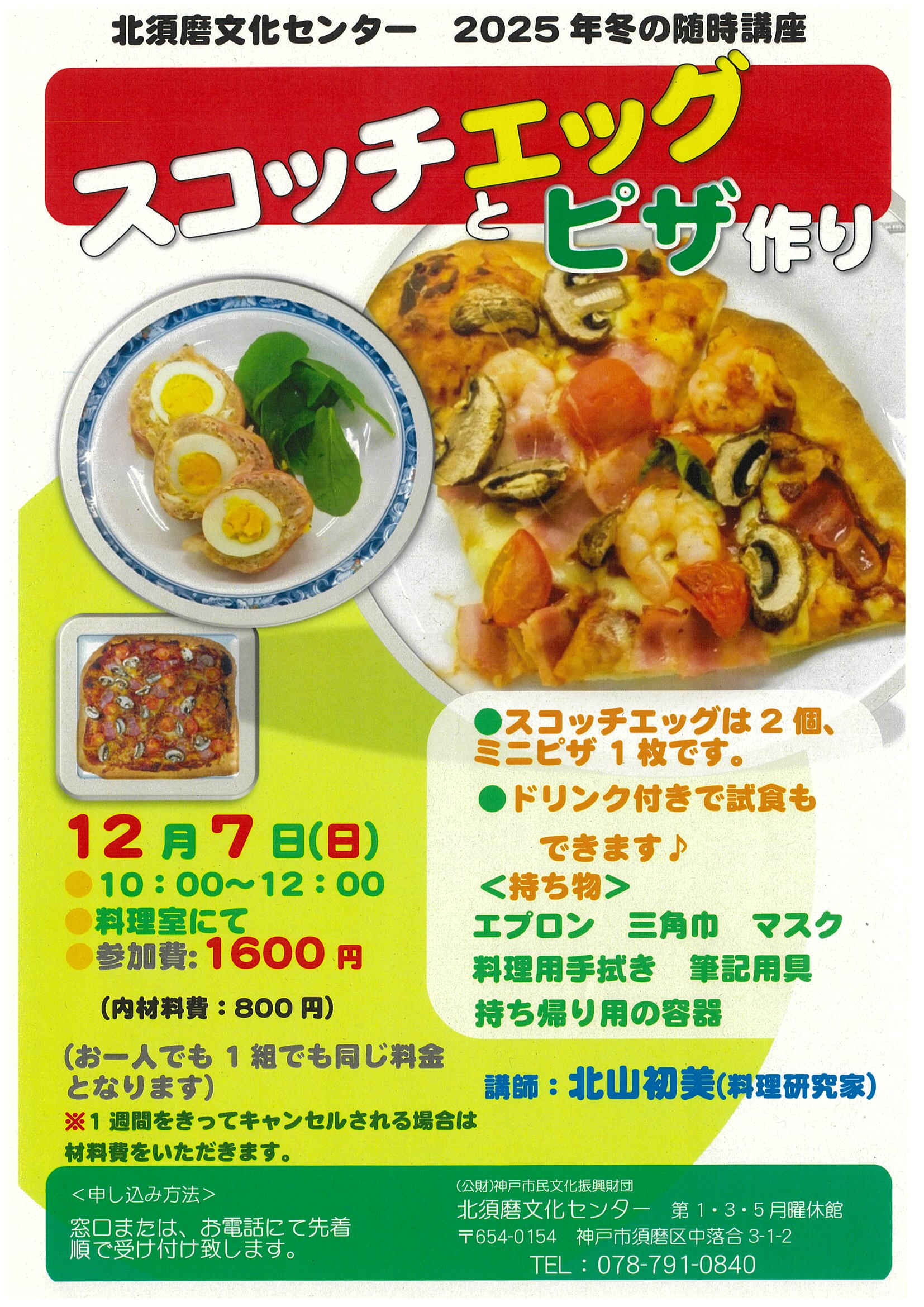 【北須磨文化センター】「スコッチエッグとピザ」作りにチャレン …