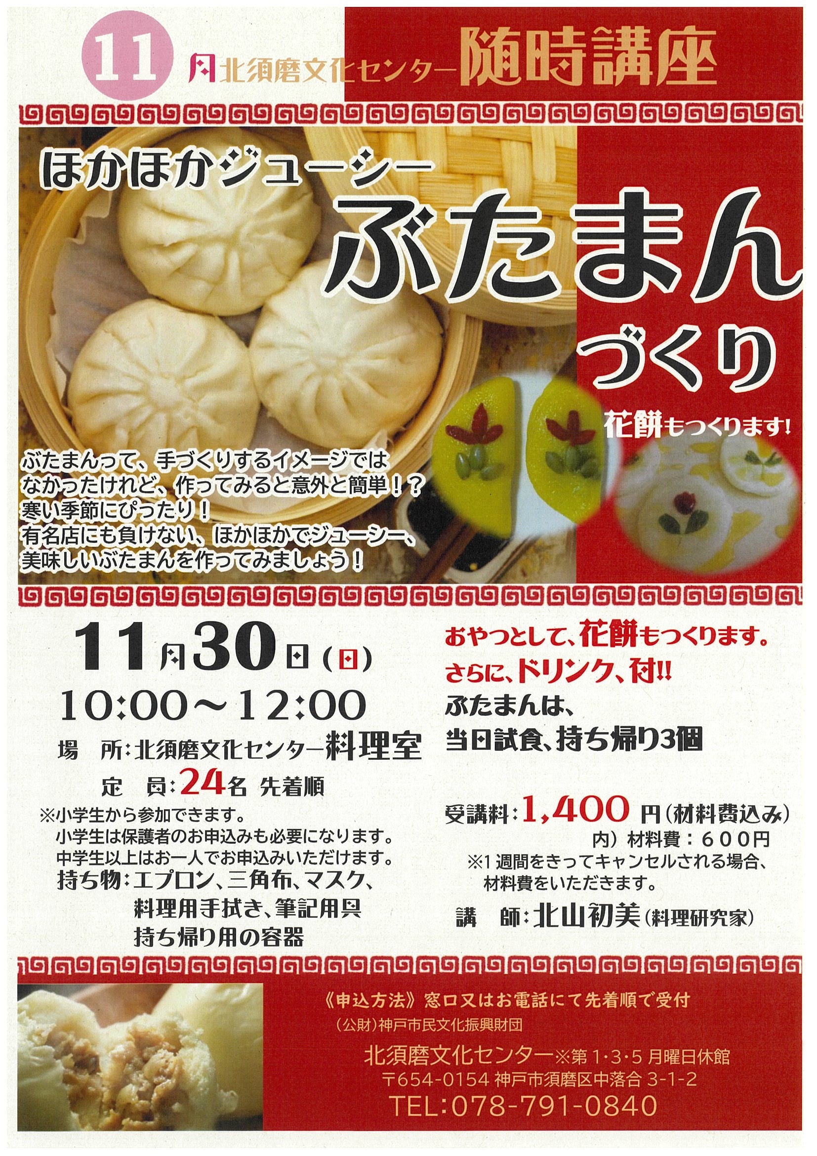 【北須磨文化センター】ジューシーな「ぶたまん」作りにチャレンジしよう‼️