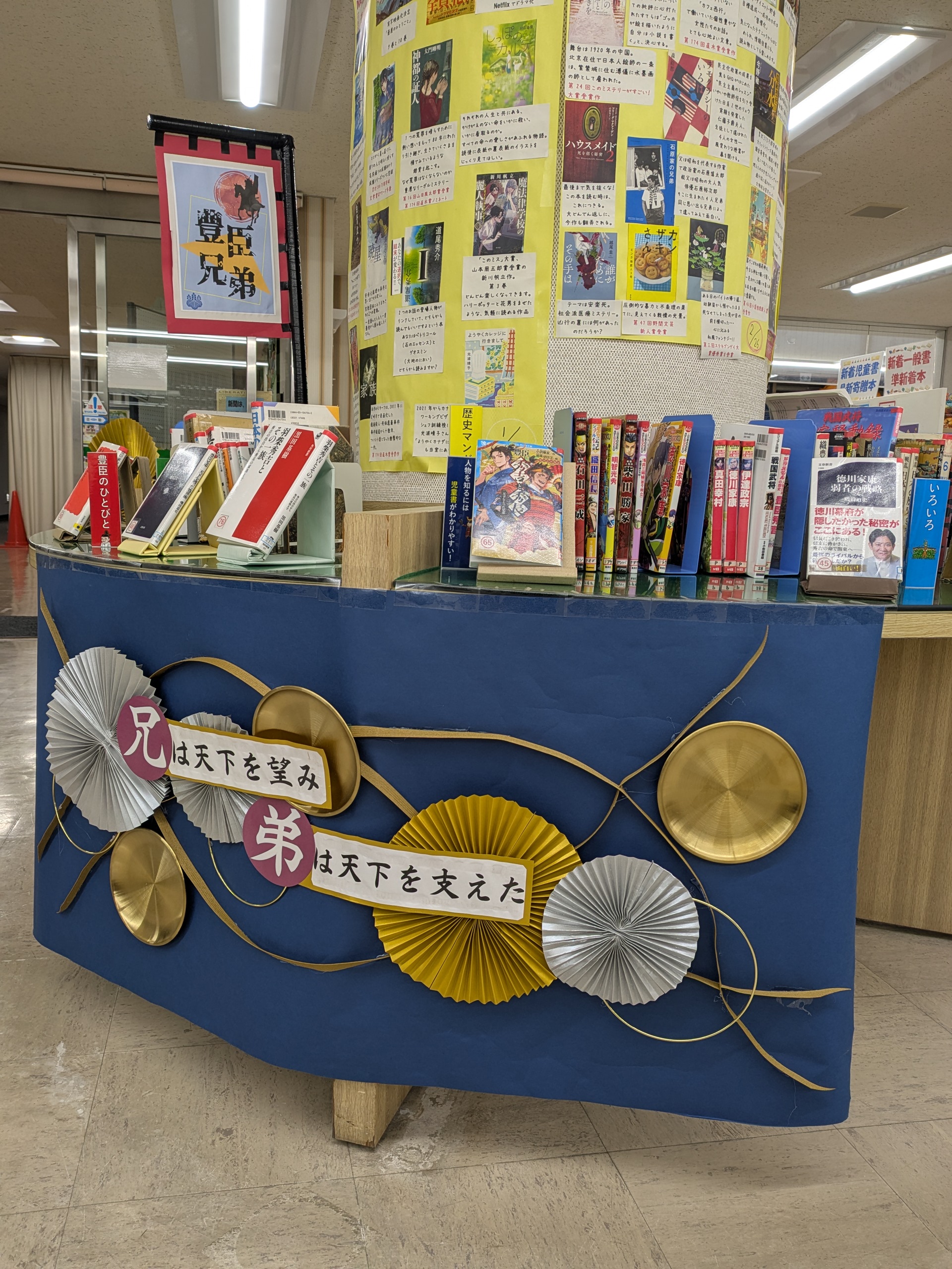 図書室では、話題のNHK大河ドラマ「豊臣兄弟」特別企画コーナーが始まりました。