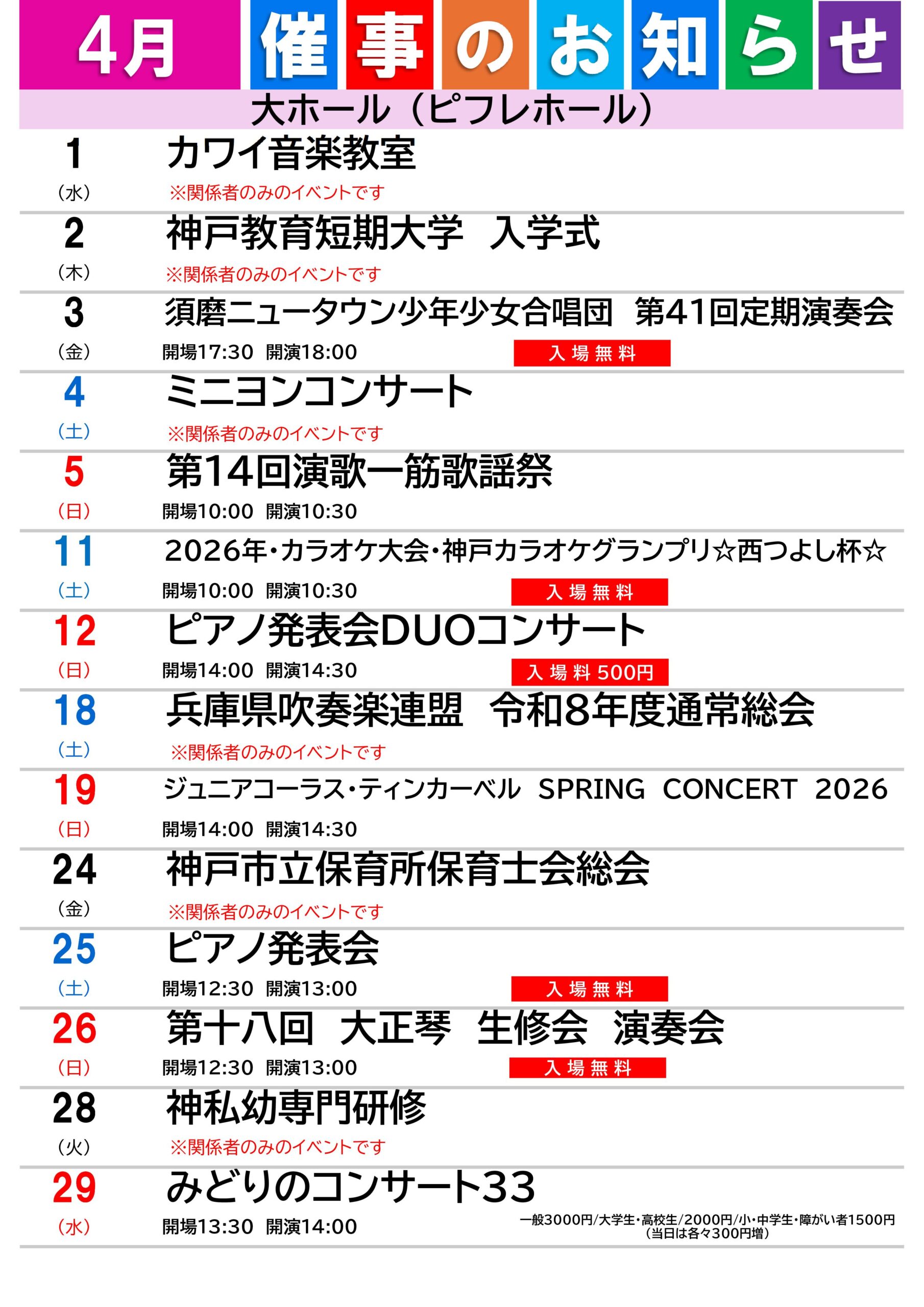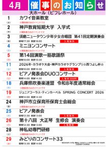 2026年4月 ピフレホール・大ホール催事