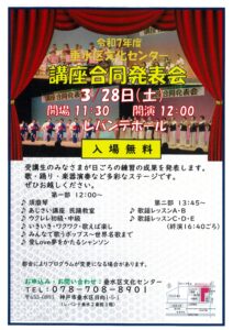 受講生の皆さまが日ごろの練習の成果をお披露目いたします。